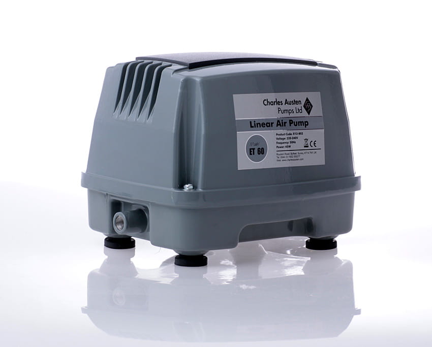 Dmuchawa Charles Austen Enviro ET60 przyczynia się do zwiększenia ilości tlenu w wodzie. Praca bezolejowa, wyjątkowo cicha. Przystosowana do pracy ciągłej i przerywanej. ET60 jest łatwe do obsługi. Dwuletnia gwarancja. Konkurencyjne cenowo zestawy serwisowe. Solidna konstrukcja sprawia, że jest idealną dmuchawą do przydomowej oczyszczalni ścieków.