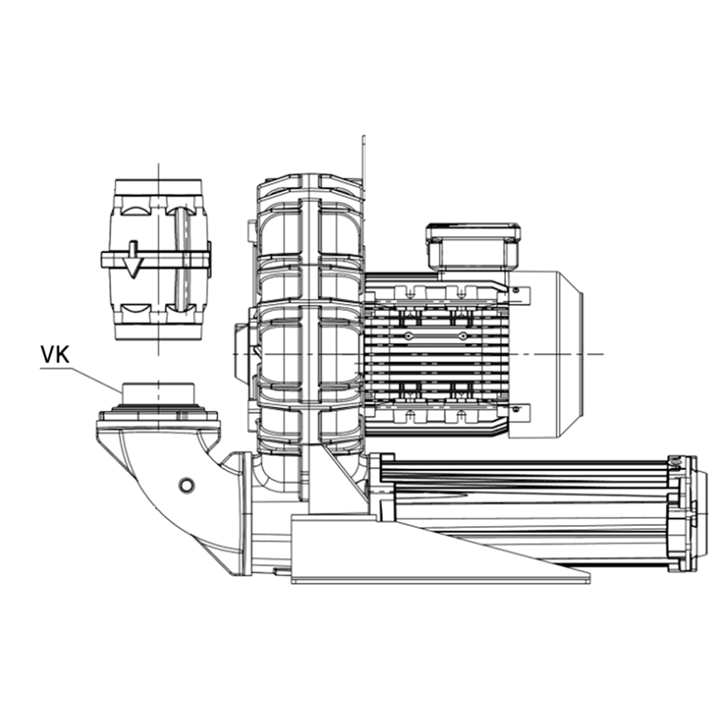Umożliwia montaż zaworu VRL bezpośrednio do pokrywy dmuchawy serii K/e jak w poniższym opisie: