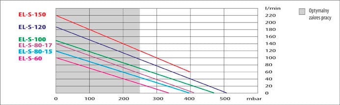 Zabezpieczenie mechaniczne (auto stopper). Seria EL-N standardowo wyposażona jest w wyłączniki mechaniczny, na wypadek pęknięcia membrany. Sercem wyłącznika jest mikrostyk, który odcina dopływ zasilania w przypadku jego aktywacji. Dzięki temu dmuchawa zabezpieczona jest przed dalszymi uszkodzeniami.