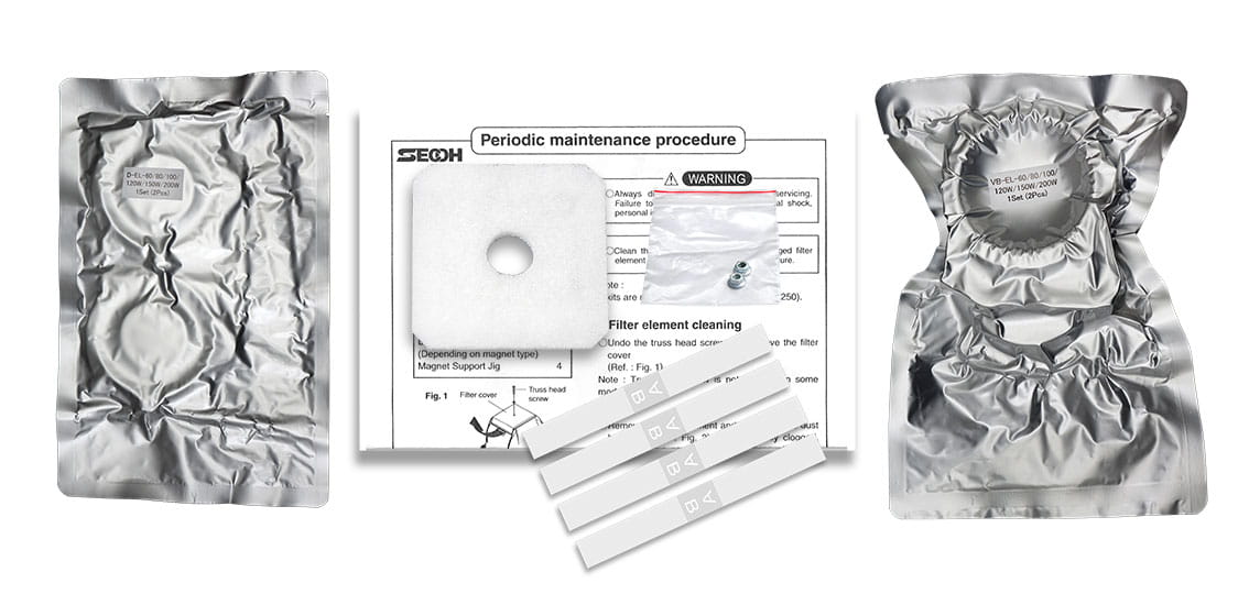 Zestaw naprawczy do SECOH EL-S-200W. Komplet składa się z gumowych membran (2 sztuki), filtra powietrza, obudowy membran z zaworkami (2 sztuki), pasków dystansujących do montażu membran (2 sztuki), nakrętek do ramki z magnesem.